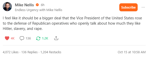 Most of the sentient universe condemned the squalid bigotry, but JD Vance rushed forward to defend the “kids” against what he called “pearl clutching.”