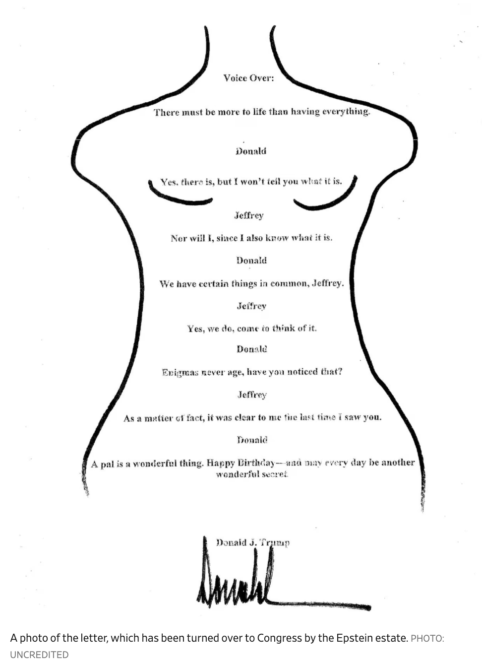 And yet, here it is: in all of its smirky, smutty, cringey glory: Epstein Birthday Letter With Trump’s Signature Revealed - WSJ.