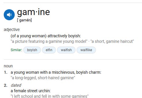 When the story first broke, savvy observers noted that “enigma,” is an anagram for the word “gamine.” And what is a gamine?