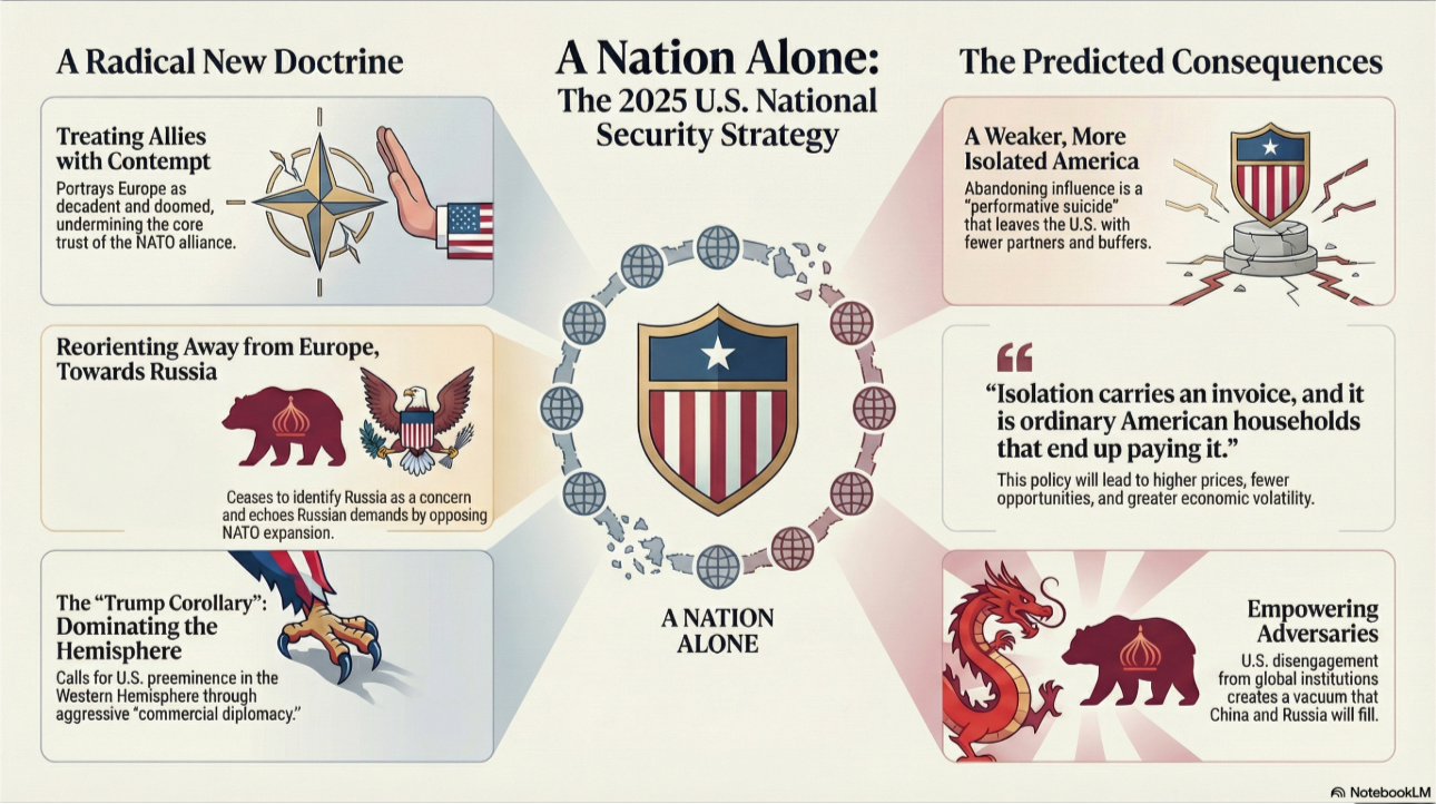 What lingers most is the contempt. It sits behind the sentences aimed at allies, institutions, and the postwar architecture that the United States once led with pride because it worked, by making Americans safer, wealthier, and less alone. The NSS treats that inheritance as an insult. It casts global leadership as naïve charity, alliance management as humiliation, and the idea of shared rules as an elite trick played on ordinary Americans. The proposed solution reads like spite, and spite has never built durable security.